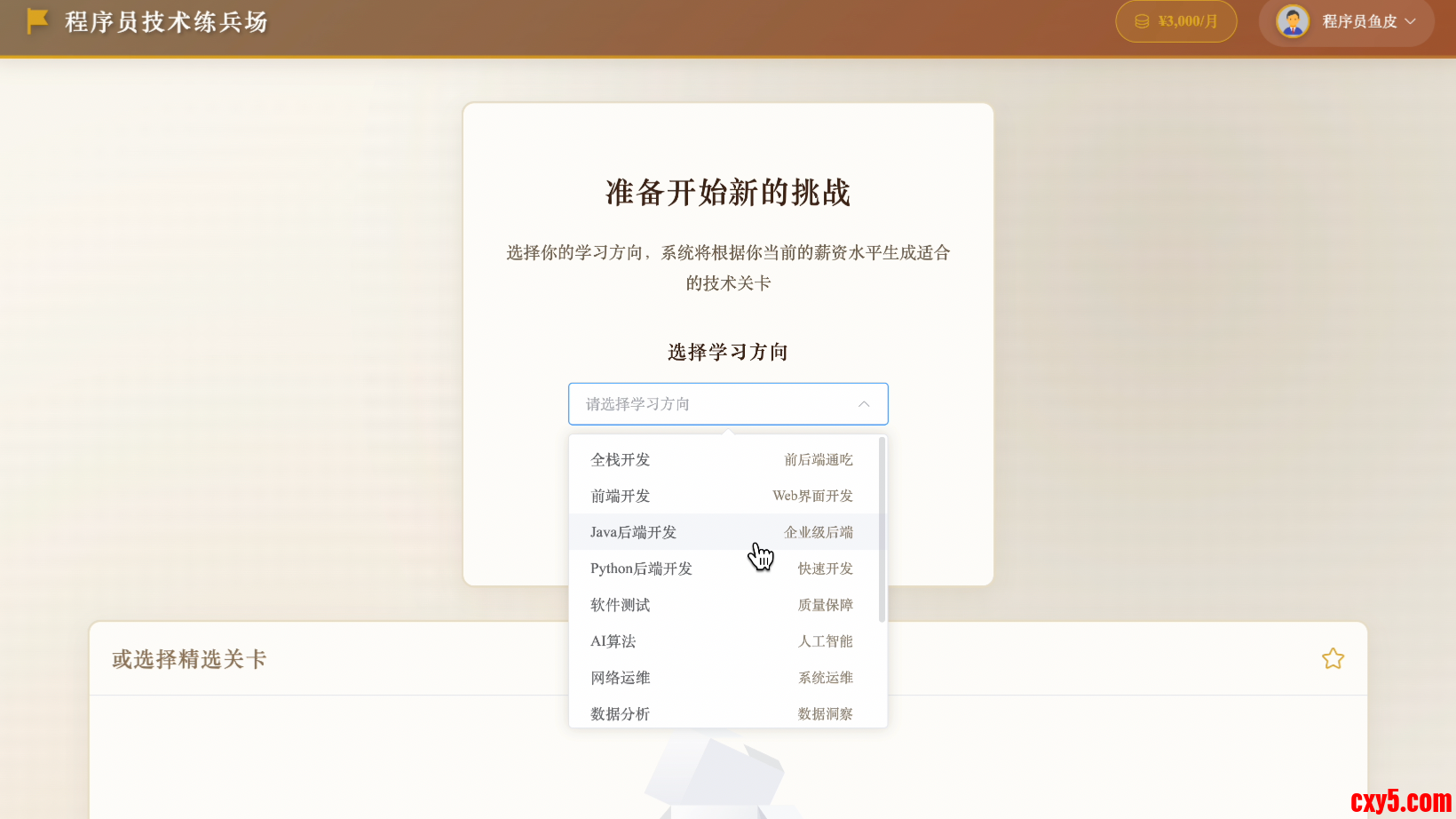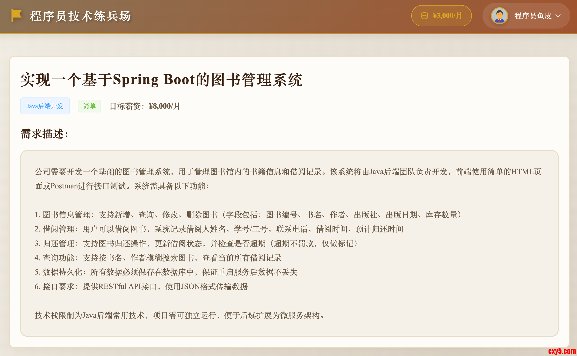 你是一名月薪 3000 的程序员,慕名来到鱼皮的技术练兵场,听闻此地可通过不断挑战提升技术水平和薪资,策马奔腾。 事不宜迟,准备挑战吧,愿君武运昌隆! 本文对应视频版:https://bilibili.com/video/BV1dW4tz9E5M 首先,请选择自 ...