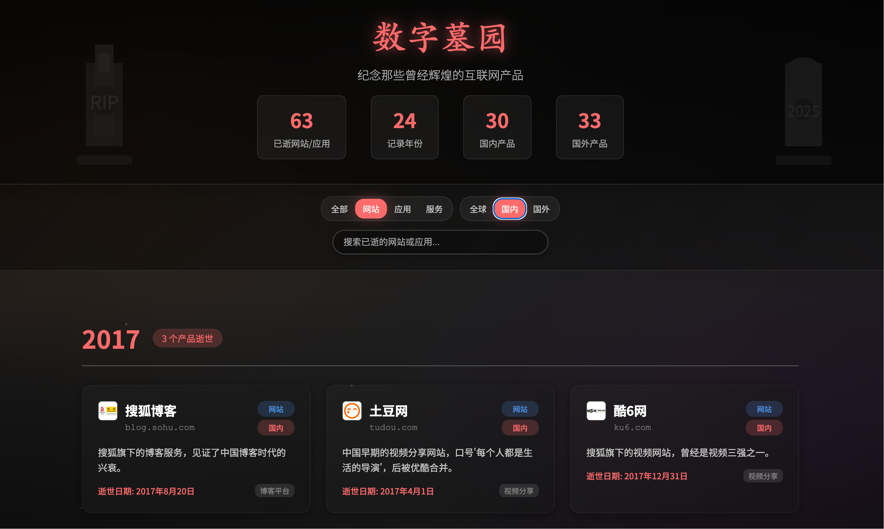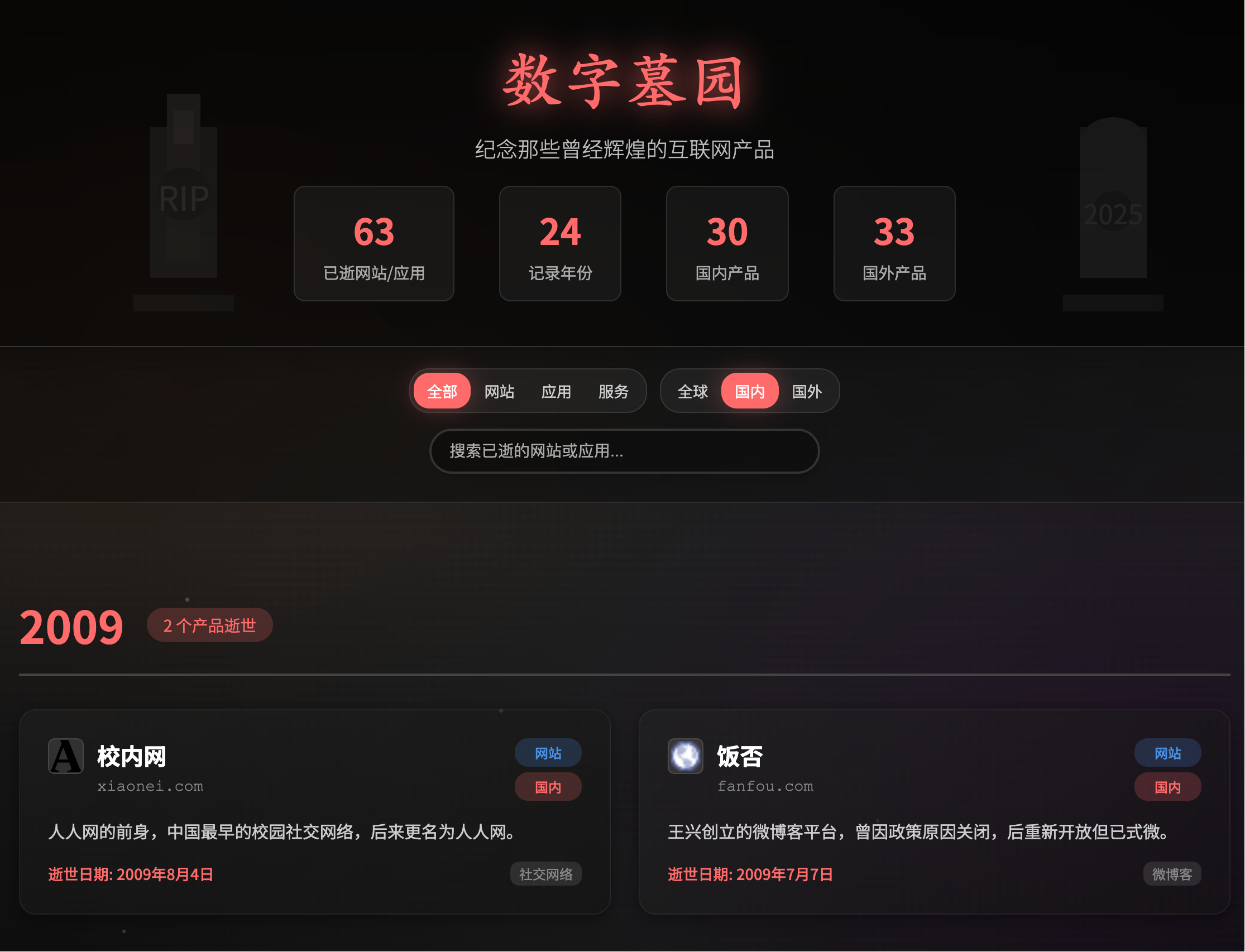 开心网、快播、千千静听...我用 AI 给这些逝去的网站建了座 “墓园”