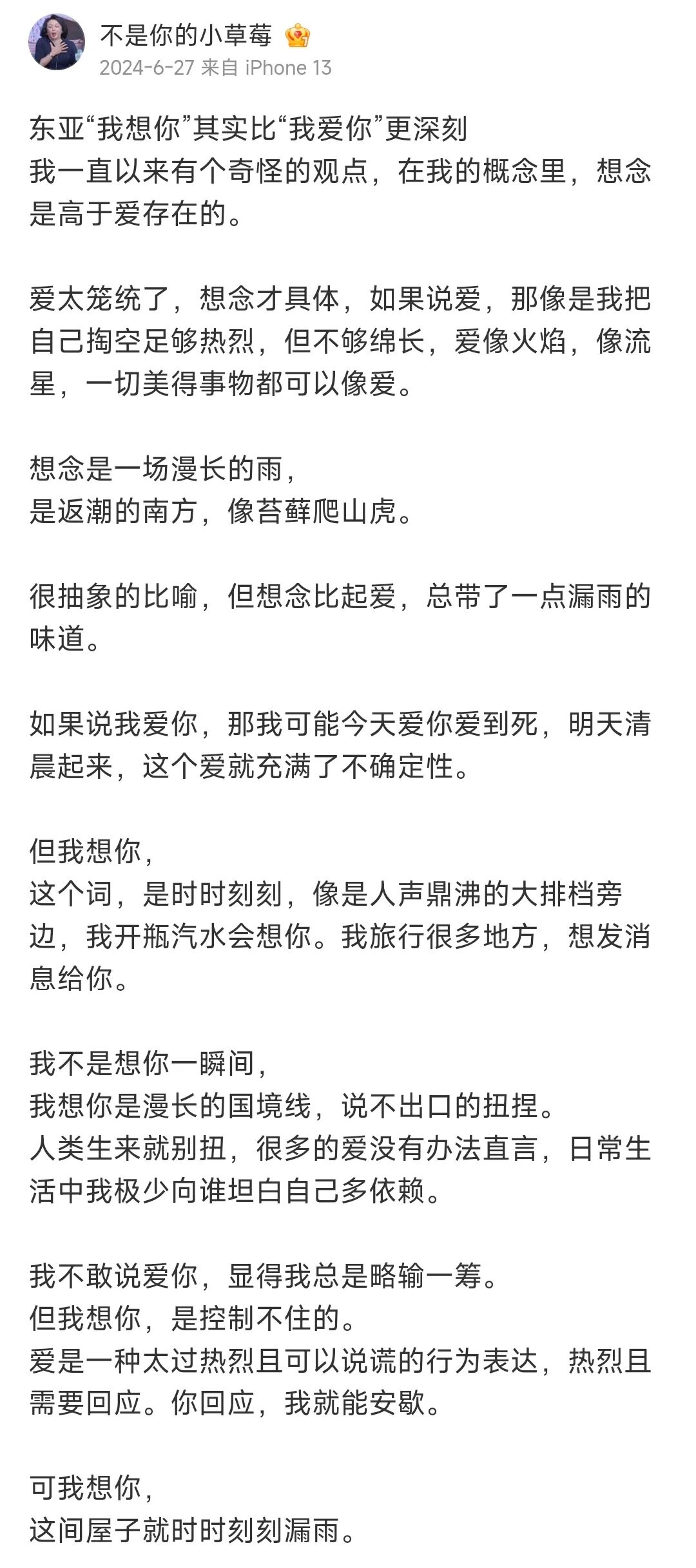 写在前面 645 字 | 思念 | 爱 | 文化差异 | 感触 正文 曾经看过一篇文章,说在东亚这种压抑的环境中,思念往往比爱更加深刻。 虽然文章没有逻辑性,只有感染力,不过对于这个观点,我无比赞成。 “我爱你” 带有强烈的暗 ...