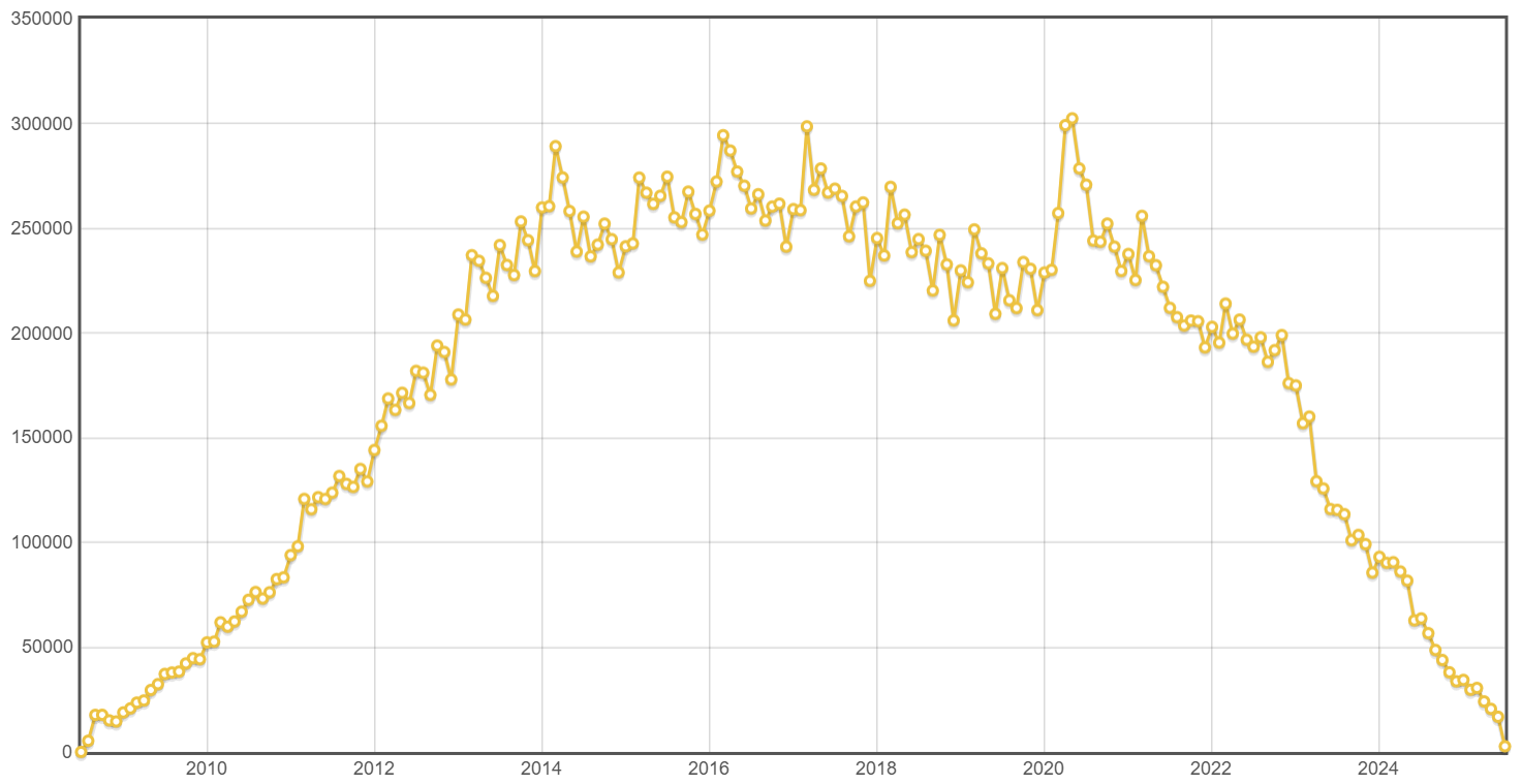 你好呀,我是歪歪。 前几天看到一个让我感慨万千的走势图: 本来想让你猜一猜这个走势图的内容是什么的。 但是结合标题你应该也能猜到了,和 Stack Overflow 有关。 这个走势图的数据是 Stack Overflow 从 2008 年开始到现在,每个月新问 ...
