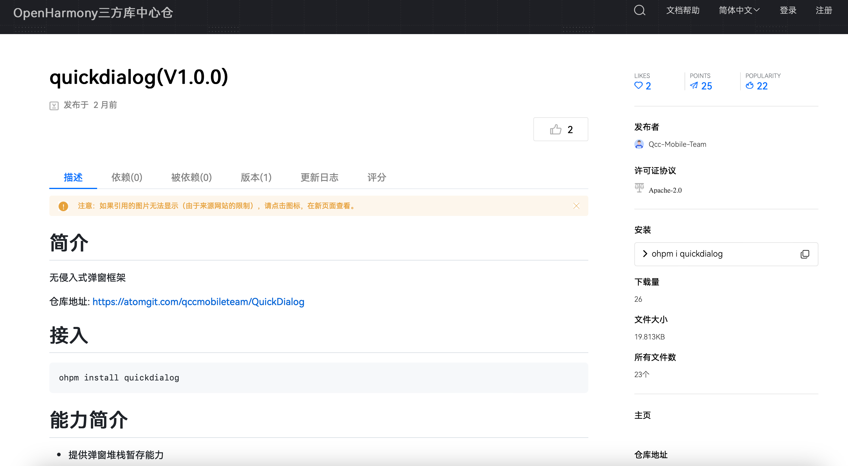近日,企查查将其自研的鸿蒙弹窗组件库“QuickDialog”开源,并上线至 OpenHarmony 三方库中心仓。这是鸿蒙生态首个支持“弹窗堆栈暂存能力”的非侵入式弹窗解决方案,凭借其灵活、高效、可复用的设计理念,有望成为鸿蒙应用开发中管理复 ...