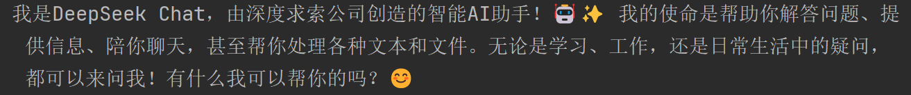 2. Spring AI 快速入门使用 @ 目录 [*]2. Spring AI 快速入门使用 [*]快速使用 [*]接入deepseek [*]流式对话 [*]options配置选项 [*]temperature(温度) [*]建议 [*]maxTokens [*]stop [*]模型推理 [*]原理: [*]接入阿里百炼 ...