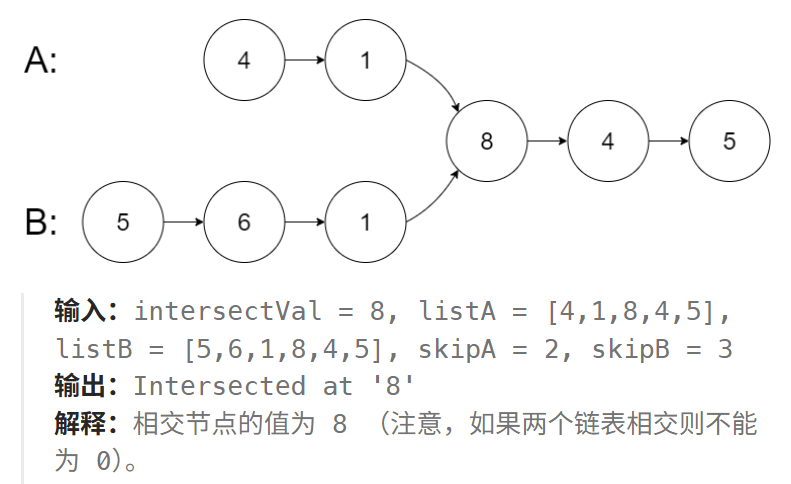 题目:给你两个单链表的头节点 headA 和 headB ,请你找出并返回两个单链表相交的起始节点。如果两个链表不存在相交节点,返回 null 。题目数据 保证 整个链式结构中不存在环。注意,函数返回结果后,链表必须 保持其原始结构 。 有几种 ...