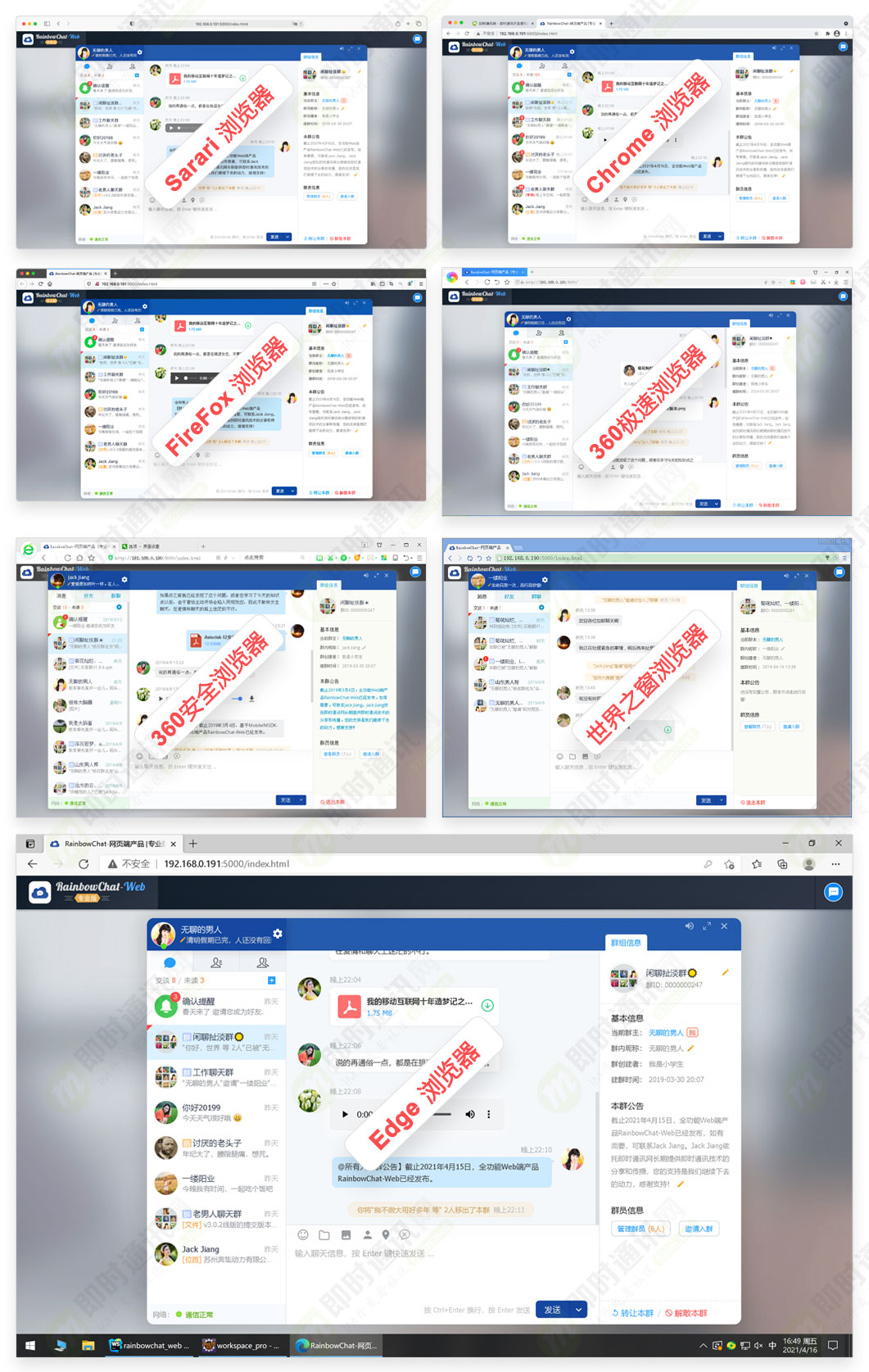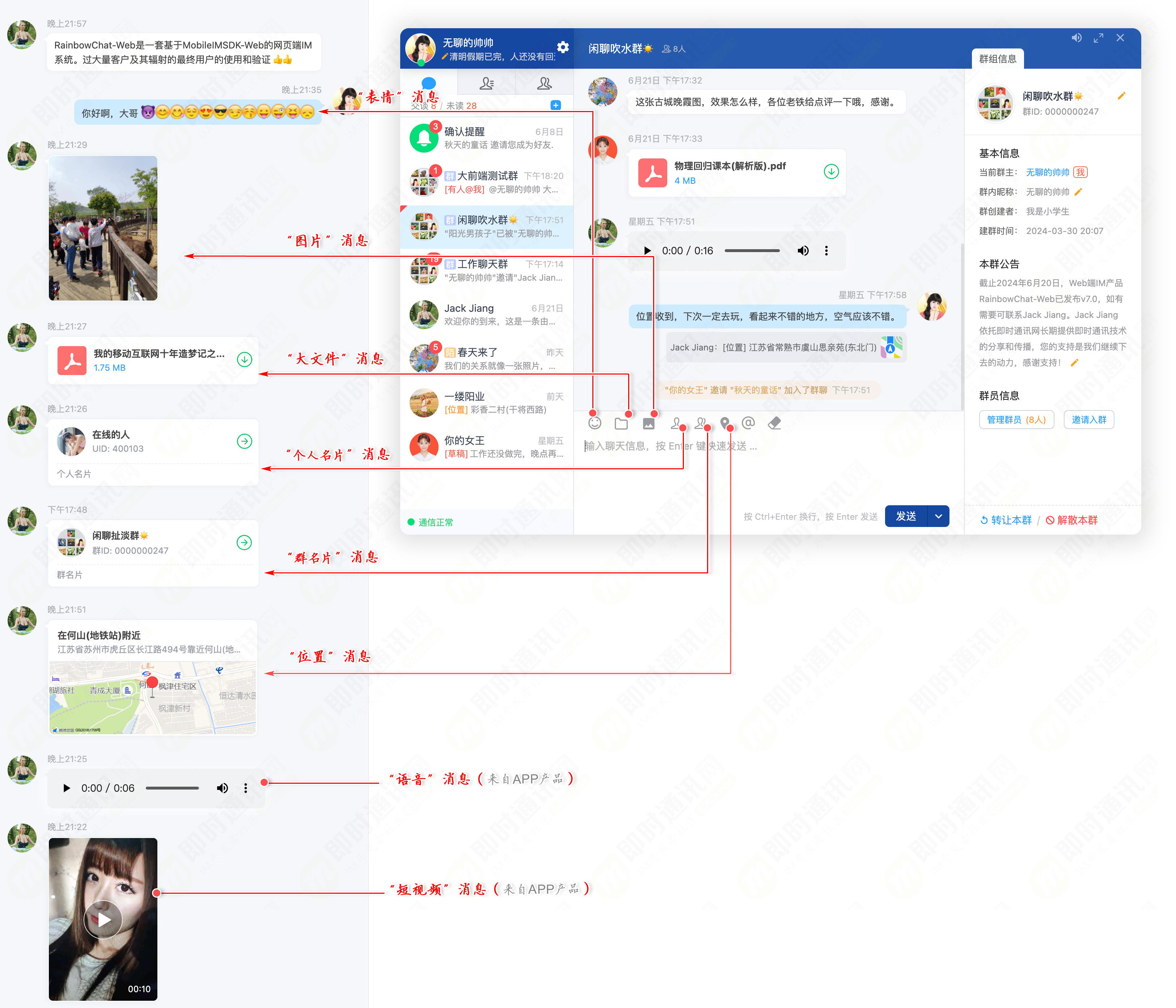 1、基本介绍 RainbowChat-Web是一套基于MobileIMSDK-Web的网页端IM系统。不同于市面上某些开源练手或淘宝售卖的demo级代码,RainbowChat-Web的产品级代码演化自真正运营过的商业产品,其所依赖的通信层核心SDK已在数年内经过大量客户及 ...