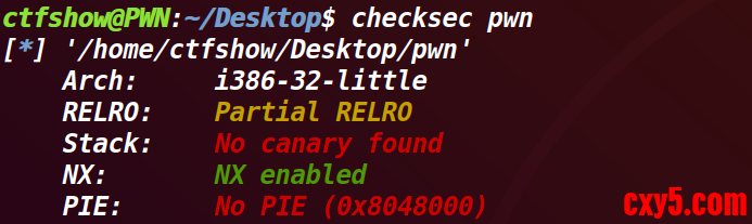 远程连接,没有什么可用信息。 file 查看文件。32 位 ELF 可执行文件。 checksec 查看文件安全属性。开启了 NX 保护,栈上无法执行。 IDA 打开文件。查看 main 函数,发现了 gets() 高危函数。 并且在 get_secret 函数中找到了后门 ...