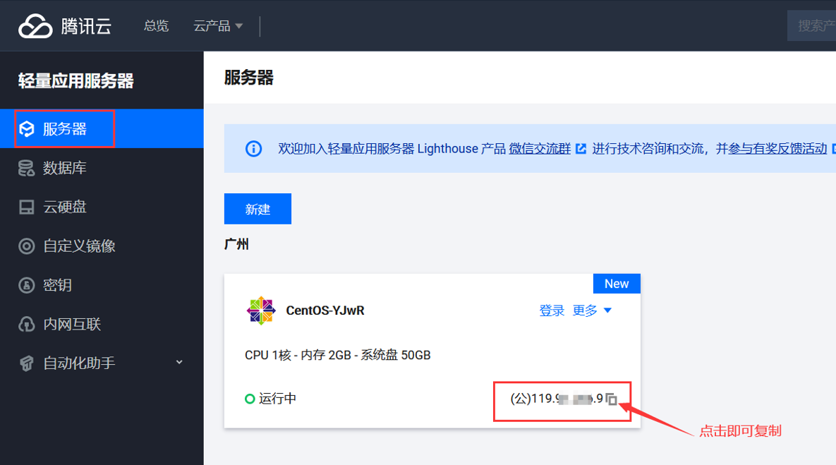 5、可以查看自己云服务器IP,用于后续xshell连接操作。