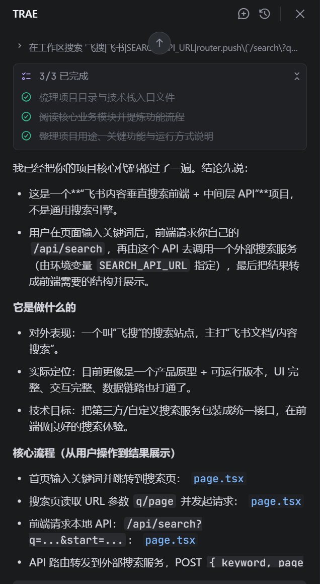 不想看AI整合流程的朋友,可以直接跳转飞书搜索体验一把!