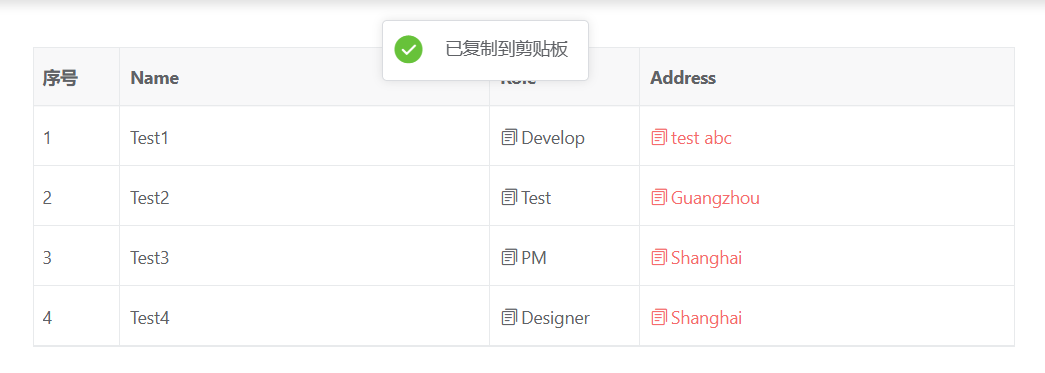 vxe-table 如何在单元格内容渲染成可点击复制的文本 查看官网:https://vxetable.cn gitbub:https://github.com/x-extends/vxe-table gitee:https://gitee.com ...