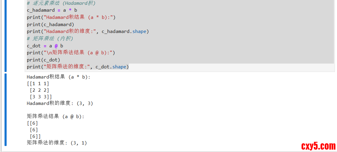 - print("Hadamard积的维度:", c_hadamard.shape)