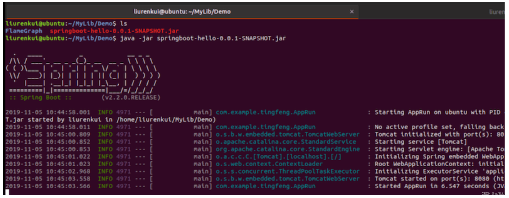 • 将 FlameGraph 和 springboot-hello 项目,放在一个目录中。使用 java -jar springboot-hello-0.0.1-SNAPSHOT.jar 启动项目