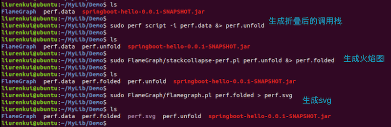 4. perf record -F 99 -ag -p `jps -l | grep springboot | awk '{print $1}'` -- sleep 30; ./FlameGraph/jmaps