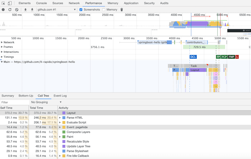 • x 轴表示抽样数,如果一个函数在 x 轴占据的宽度越宽,就表示它被抽到的次数多,即执行的时间长,注意, x 轴不代表时间, 而是所有的调用栈合并后, 按字母顺序排列的.