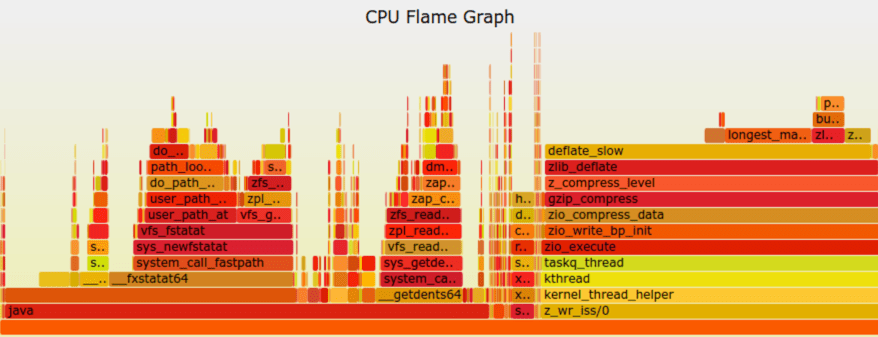 6. cat out.stacks | ./FlameGraph/stackcollapse-perf.pl | grep -v cpu_idle | ./FlameGraph/flamegraph.pl --color=java --hash > out.svg