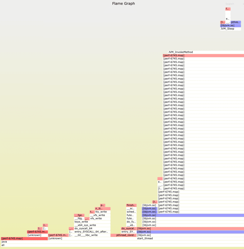 • 如果你的火焰图中,没有顶部栈的信息,在启动java项目时,请加上JVM参数:-XX:+PreserveFramePointer